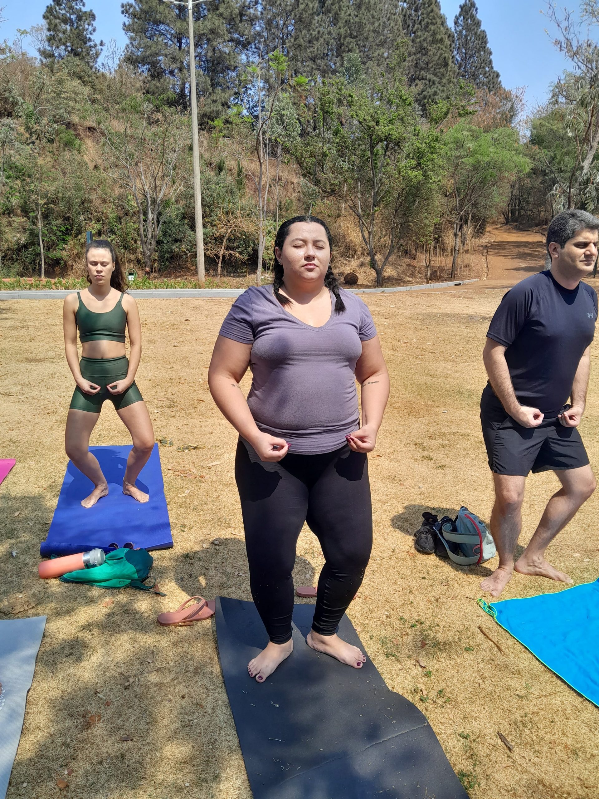 A engenheira Isadora Sampaio também relatou que foi a primeira vez que praticou Yoga. “Simplesmente adorei! Além de incentivar uma atividade que traz inúmeros benefícios físicos e mentais, foi uma experiência que nos conectou com a natureza e com nós mesmos. O local escolhido era tranquilo e arborizado, nos proporcionando uma fuga da rotina atarefada e uma sensação de paz e relaxamento. Saí de lá renovada e cheia de energia!”